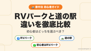 「車中泊って、道の駅でできるんじゃないの?」 車中泊を始めようとする方から、よくこんな声を聞きます。実はこれ、半分正解で半分間違いなんです。この記事では、初心者が迷いやすい「RVパーク」と「道の駅」の違いを、わかりやすく整理してご説...